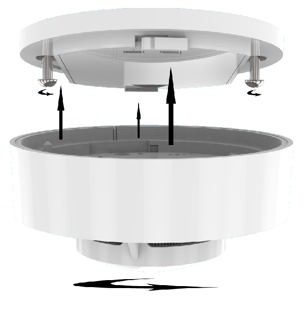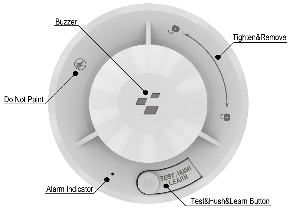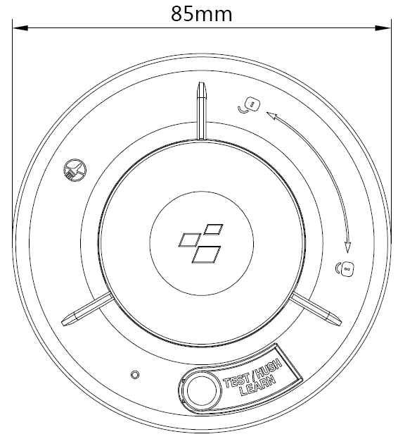 Sichern Sie alle Alarme, die mit der Montageplatte miteinander verbunden sein müssen, und drehen Sie sich im Uhrzeigersinn. Dann tritt der Rauchalarm zum Standby-Zustand ein. Diese Einheiten sind jedoch jetzt nicht miteinander verbunden.