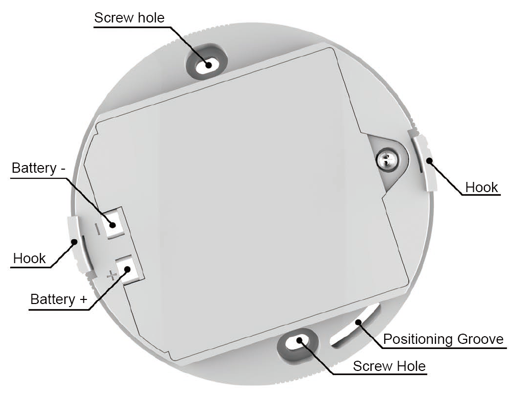 b. Stecken Sie die Haken der Montageplatte in die Schlitze des Alarms, die Positioniersäule sollte auch mit der Positioniernut ausrichten. Drehen Sie den Wecker im Uhrzeigersinn, bis es einrastet. (Siehe Abbildung 3)
